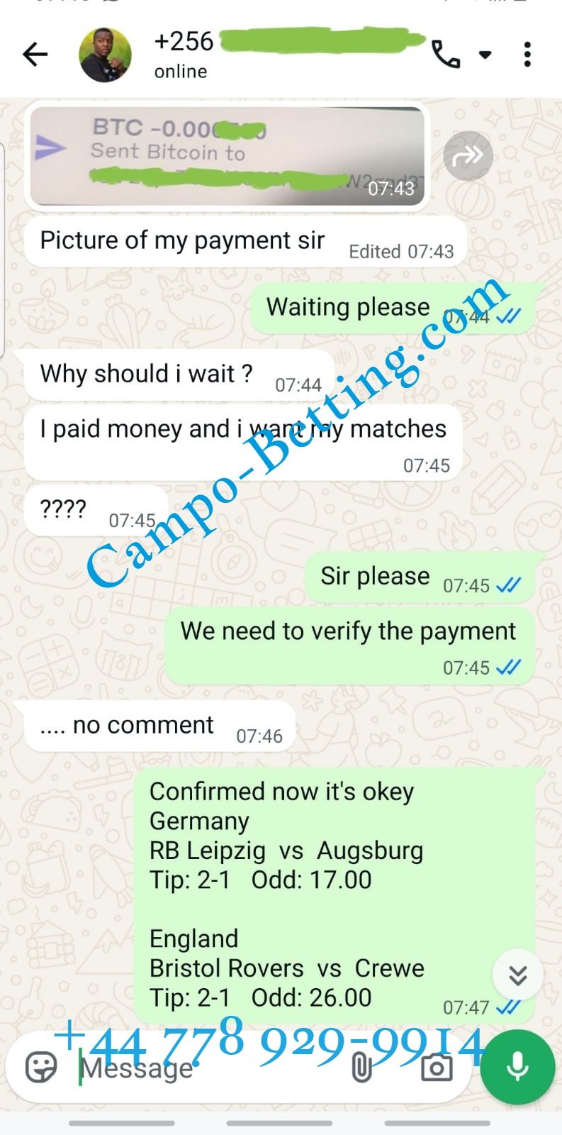 Official WhatsApp number: +44 778 929-9914