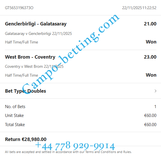 | 22.11.2025 | Coventry vs West Brom | 2/1 | 23.00 | 1:2 / 3:2 |