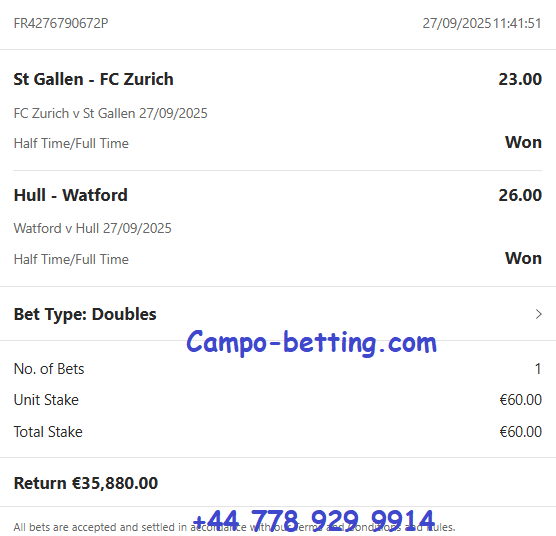 | 27.09.2025 | Zurich vs St. Gallen | 2/1 | 23.00 | 0:1 / 3:1 |