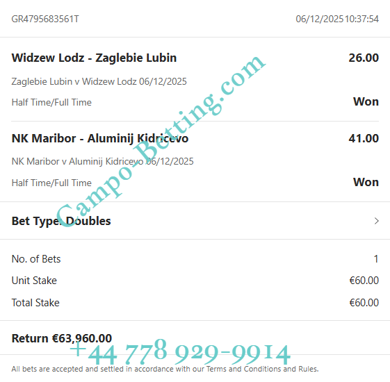 06.12.2025 Zaglebie  vs  Widzew Lodz 2/1 26.00 0:1 / 2:1
