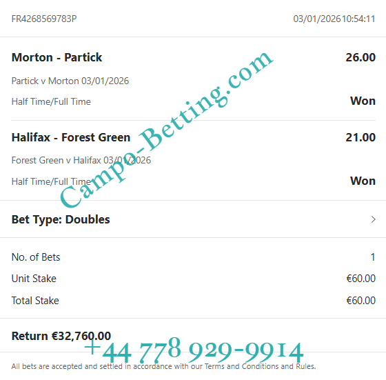 03.01.2026 Partick Thistle  vs  Morton 2/1 26.00 0:2 / 3:2