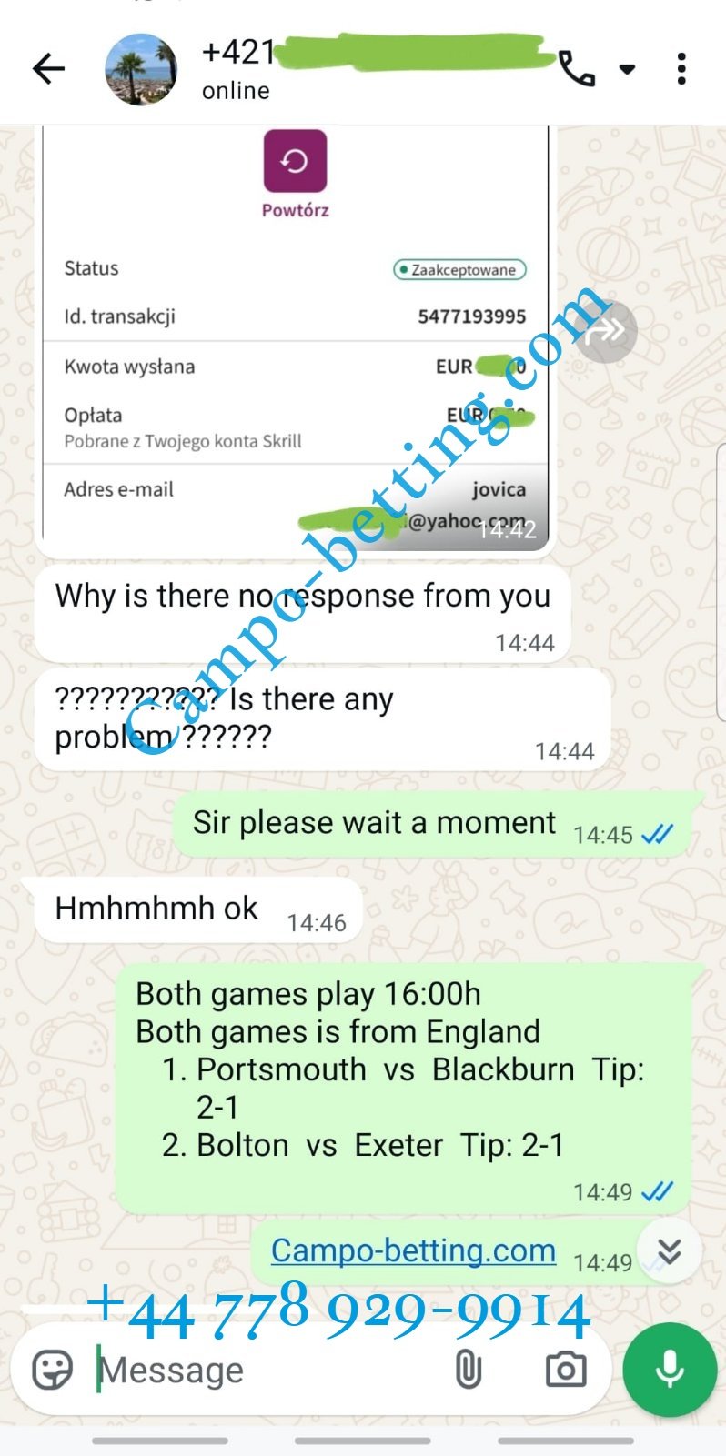 Official WhatsApp number: +44 778 929-9914