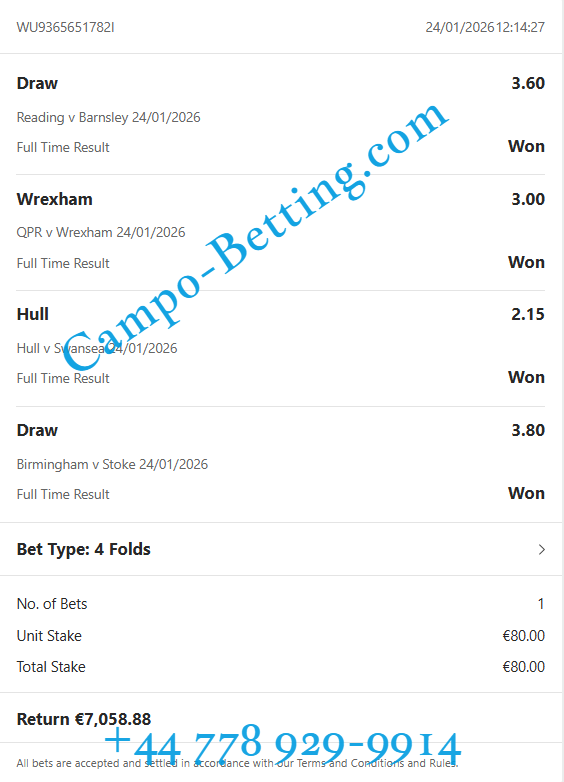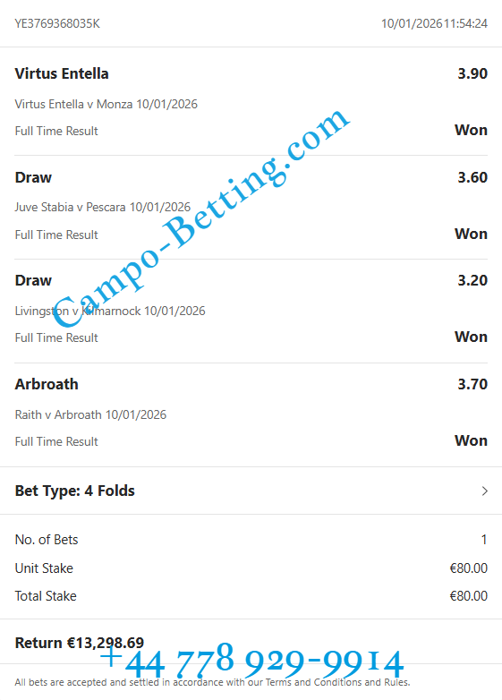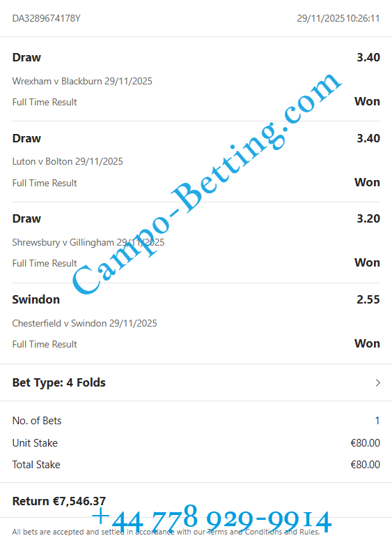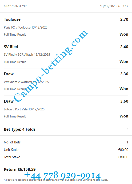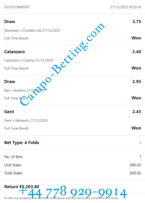 This offer is best for one time week betting people. Here you can see big sure odds and big money goes here. Also if you want to have this VIP fixed ticket, please contact us on WhatsApp or mail.